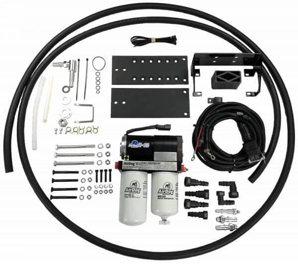 This is the AirDog II-4G DF-165 fuel system for the 2019 and UP Ram Cummins. This diesel lift pump mounts to the frame rail using the supplied sandwich plate mounting system. A Fuel Module Upgrade Kit is installed in the factory fuel basket to pull fuel through a, factory-style, 1/2" bulkhead fitting. This will bypass the factory in-tank lift pump. The pressure side connects directly into the side of the factory fuel filter housing. The AirDog Air/Vapor return is sent back to the tank through the factory 3/8” suction line once the module is modified. This is a 165GPH (Gallon Per Hour) lift pump system for stock fuel trucks. Check out our installation manual for a list of parts that are included with this kit.