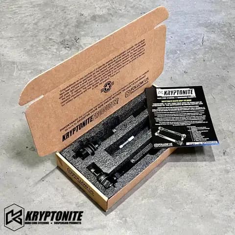 Engineered exclusively for the Extreme demands of today's Heavy Duty Truck. Built with pride in the USA to work with stock or modified suspension. Kryptonite Death Grip tie rods will fit any 2001-2010 2500/3500HD and Hummer H2 that has the center link mounted in the factory location, and can be upgraded in the future to accept the Kryptonite Center link.