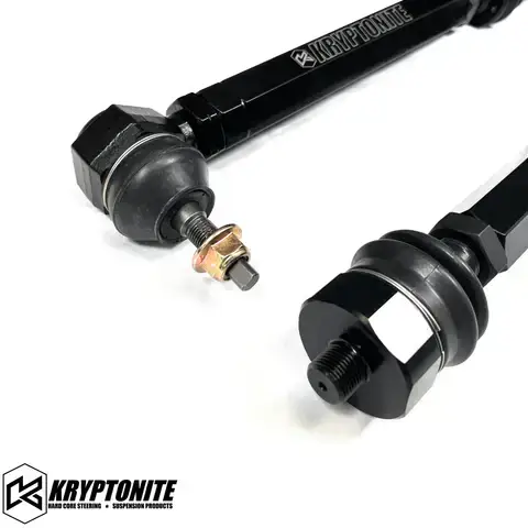 Using superior components and engineering, these tie rods easily outperform the competition. Kryptonite series tie rods can be used with the Kryptonite series center link with our updated inner tie rod. This pair is for use with your factory center link.
